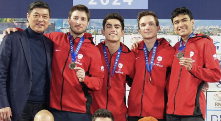Tim Morehouse Fencing Club fencer Filip Dolegiewicz won his first international medal, a bronze in Men’s Team Saber at the Tbilisi Men’s Saber World Cup.