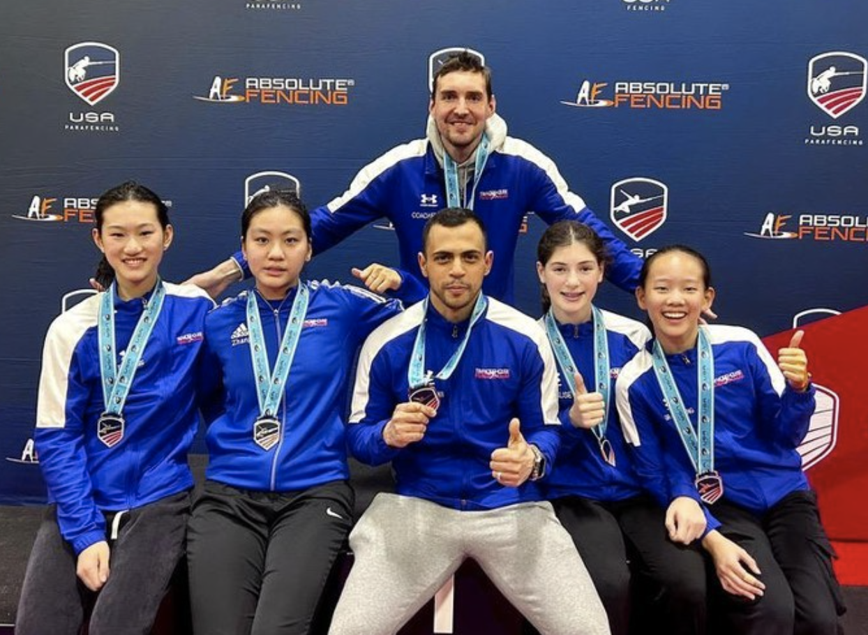 Team Tim Morehouse 1 took gold in Junior Team Women’s Foil. The team consisted of Alina Zhang, Iris Yang, Ella Calise and Grace Feng.